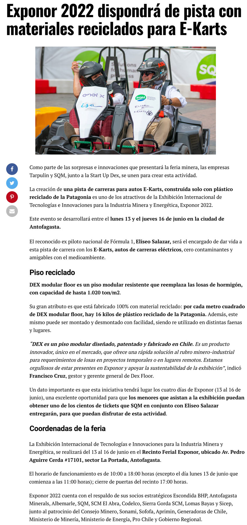 Exponor 2022 dispondrá de pista con materiales reciclados para E-Karts - (mch.cl)