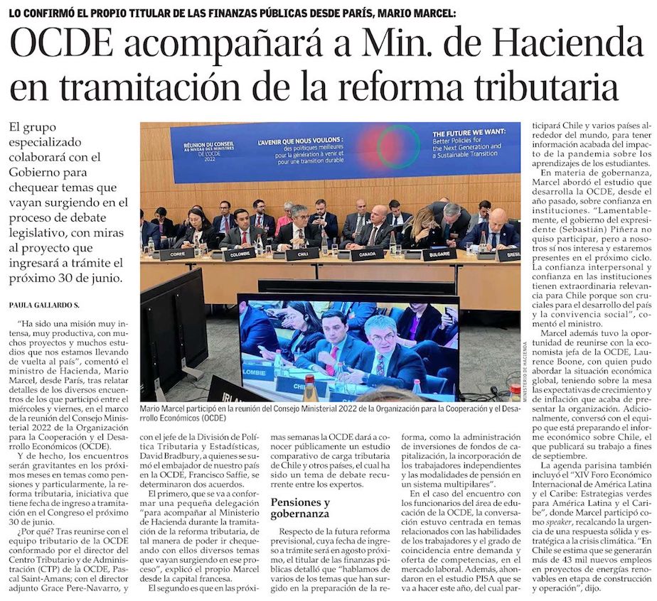 Reforma tributaria: gobierno inicia trabajo prelegislativo con parlamentarios y la Ocde acompañará el proceso - (Pulso)