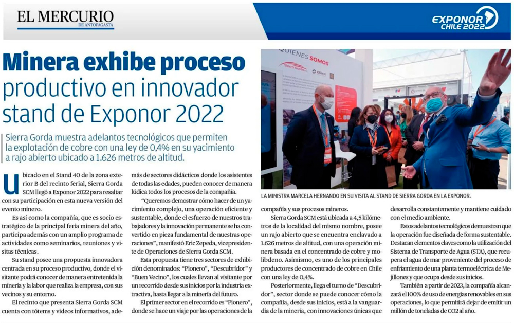 Las inversiones mineras que se dieron a conocer en Exponor 2022 - (mch.cl)