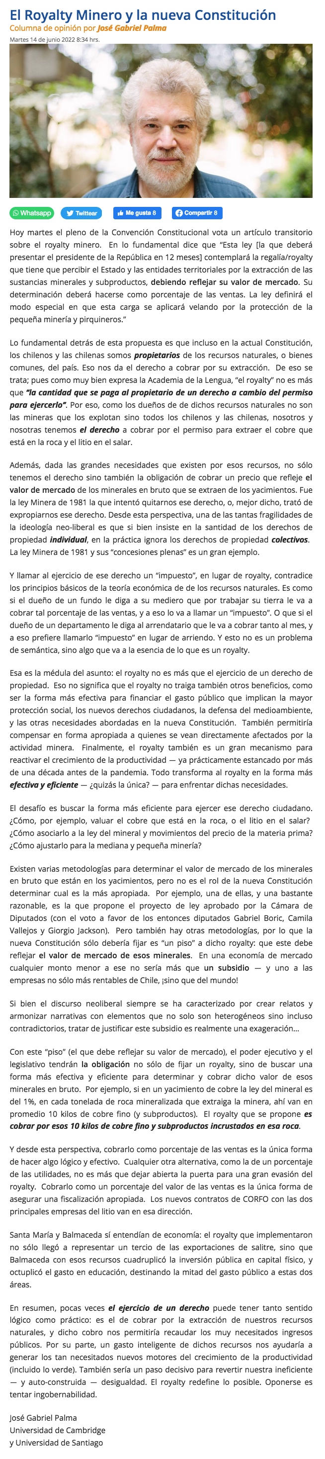 El royalty minero y la nueva Constitución - (El Mostrador)