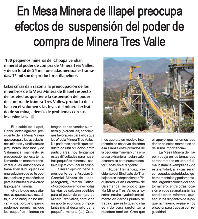 Minera Tres Valles anuncia reorganización y prevé despidos de más de 200 trabajadores - (El Mercurio de Santiago)