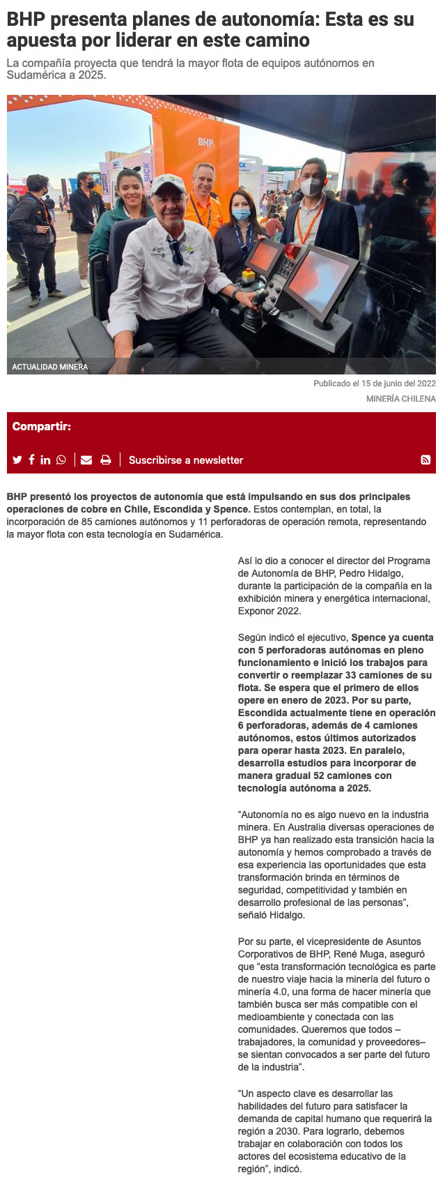 BHP potencia desarrollo de equipos autónomos - (El Mercurio de Santiago)