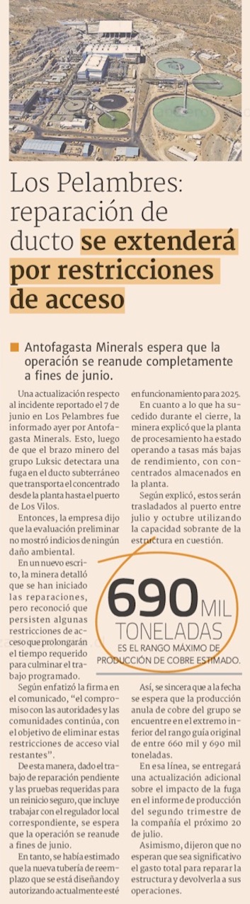 Crece preocupación por operación de Pelambres - (El Mercurio de Santiago)