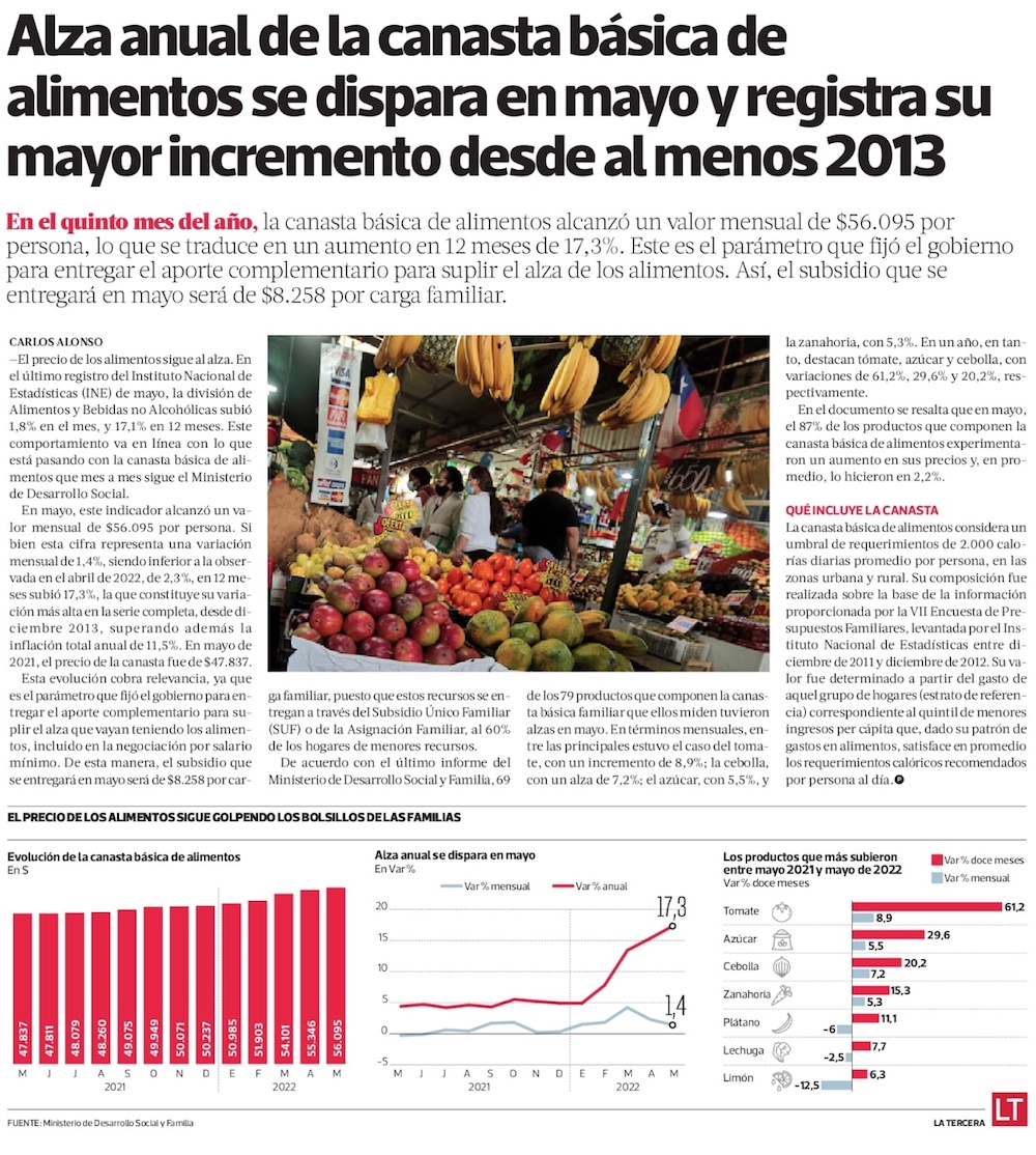 Valor anual de la canasta básica sube 17,3% y se sitúa en su máximo nivel - (El Mercurio de Santiago)