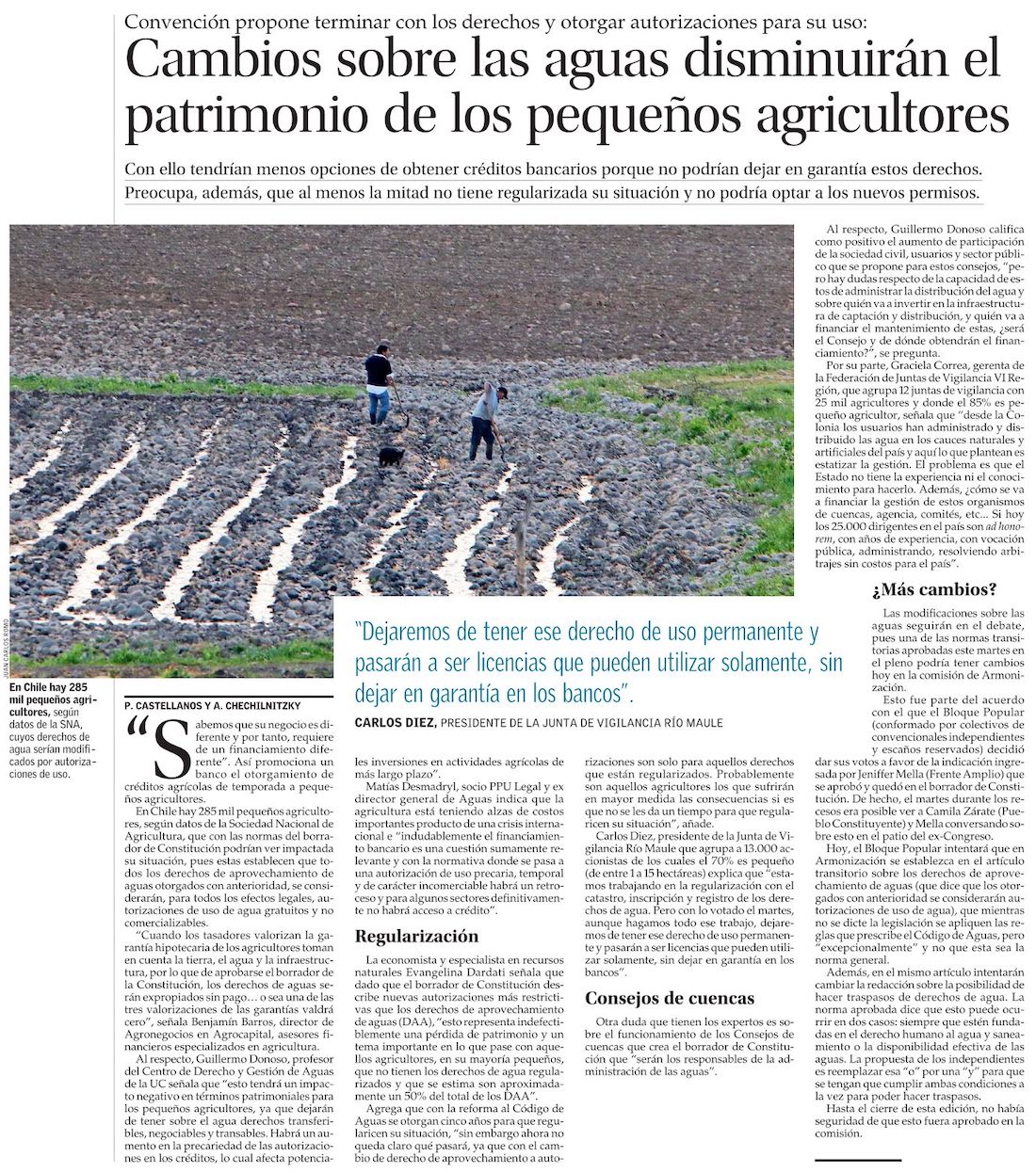 Fin de los derechos de agua provocaría baja de 20% a 30% en valor de terrenos agrícolas - (El Mercurio de Santiago)