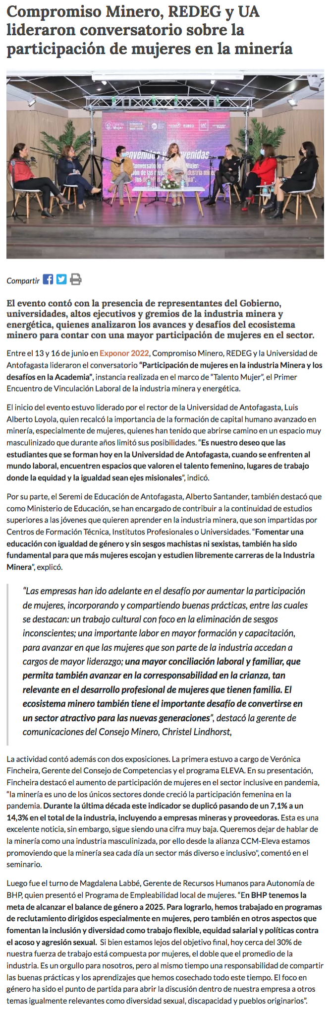 Compromiso Minero, REDEG y Universidad de Antofagasta lideran conversatorio sobre participación de mujeres en minería y desafíos en la academia - (mch.cl)