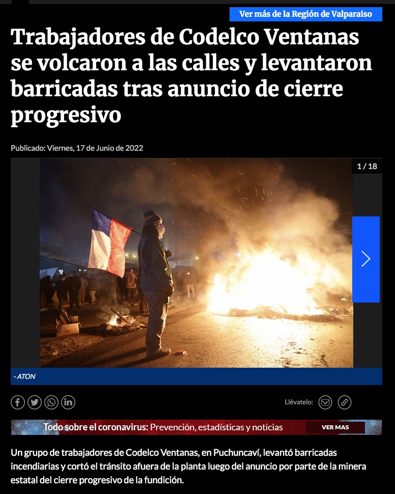 Trabajadores de Codelco anuncian que comienzan a preparar paro nacional en rechazo a cierre de Fundición Ventanas - (DF Online)