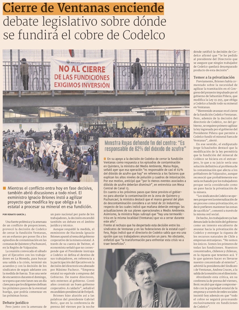 Diputados anticipan reparos a ley clave para cierre de la Fundición - (El Mercurio de Valparaíso)