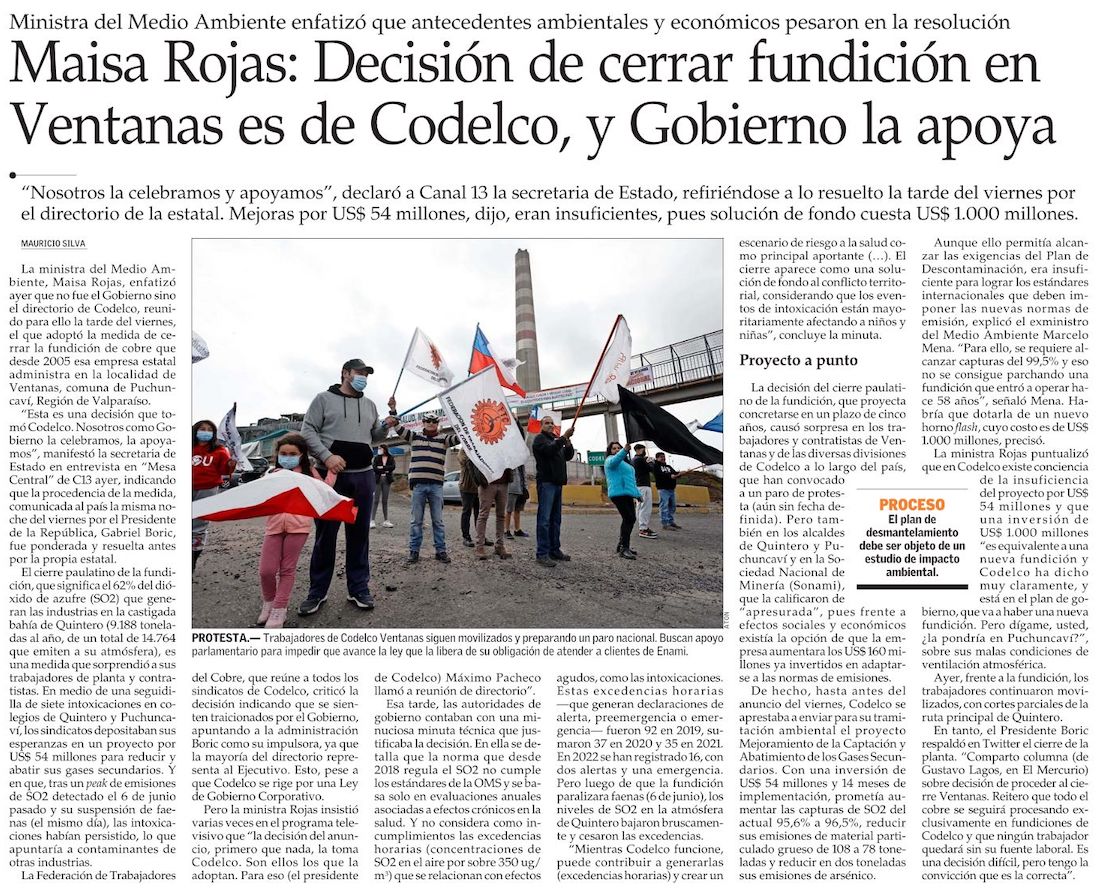 Boric dice que mantiene "convicción" sobre el cierre de Fundición Ventanas - (El Mercurio de Valparaíso)