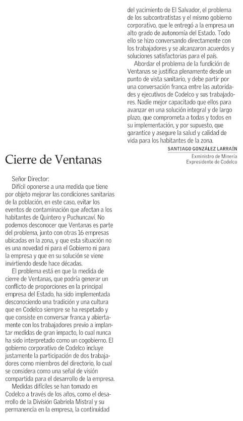 Cierre de Ventanas - (El Mercurio de Santiago)