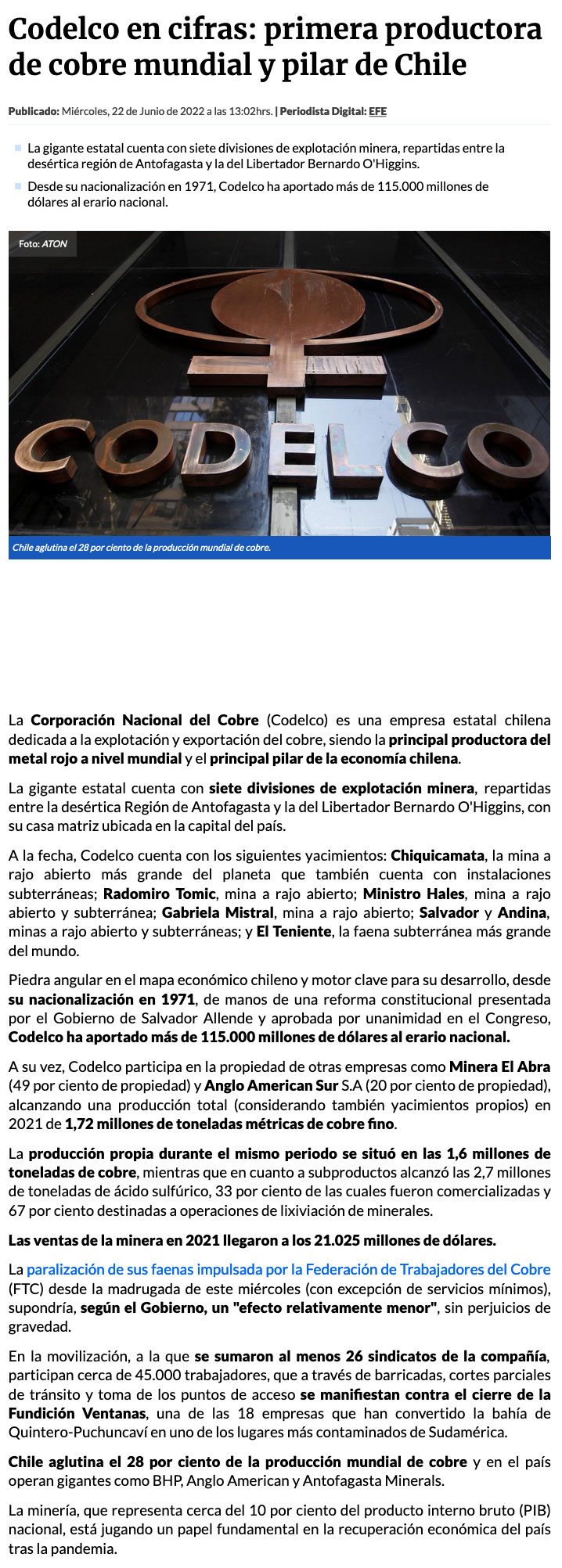 Así es Codelco, la mayor productora mundial de cobre y pilar de la economía chilena - (biobiochile online)