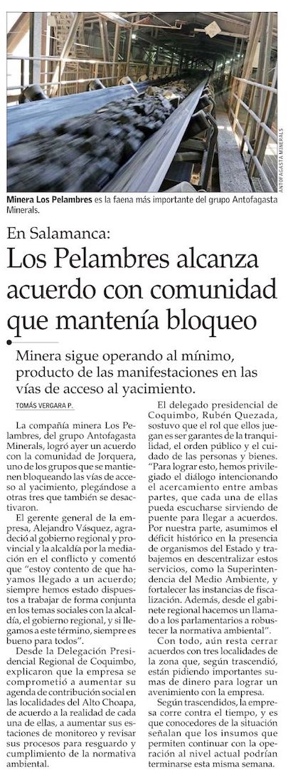 Comunidades de Salamanca llegan a buenos acuerdos con Minera Los Pelambres - (La Región)