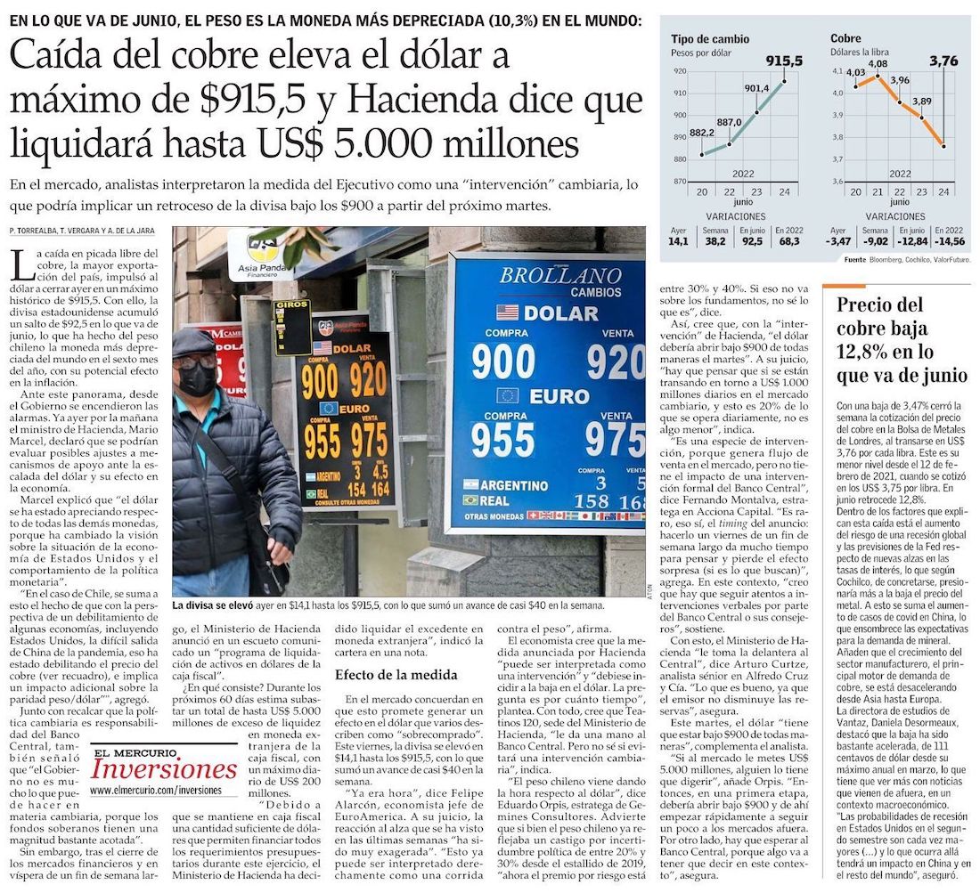 Riesgo de recesión global y desaceleración de principales economías aleja al cobre los US$4,0 - (El Mercurio de Antofagasta)