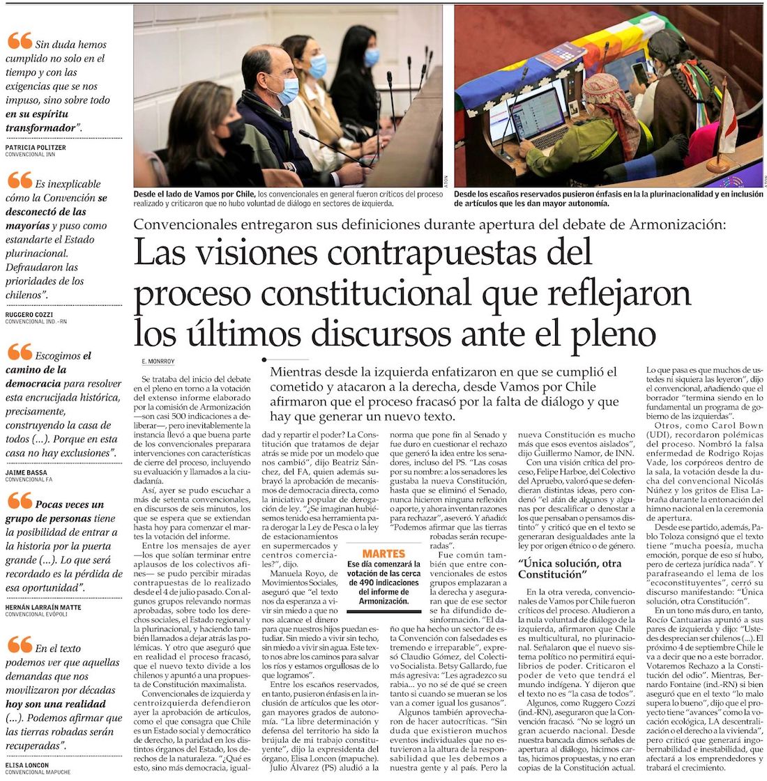 Convención entra en su última semana con votación de armonización: nudos se enfocan en materias sobre seguridad y jueces - (El Mercurio de Santiago)