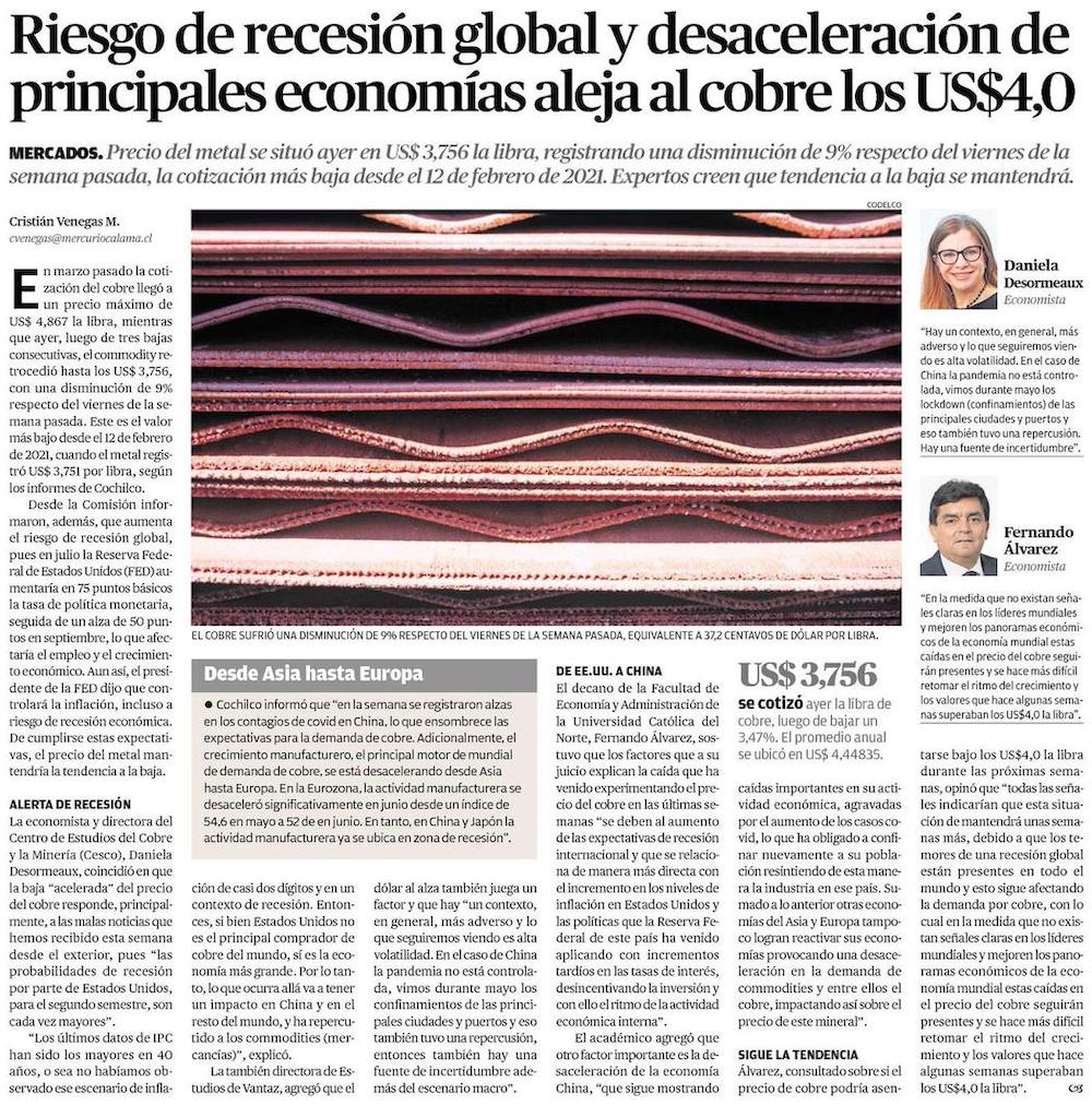 "No creemos que el precio de hoy, bajo los US$4, permanezca en el tiempo" - (Pulso)