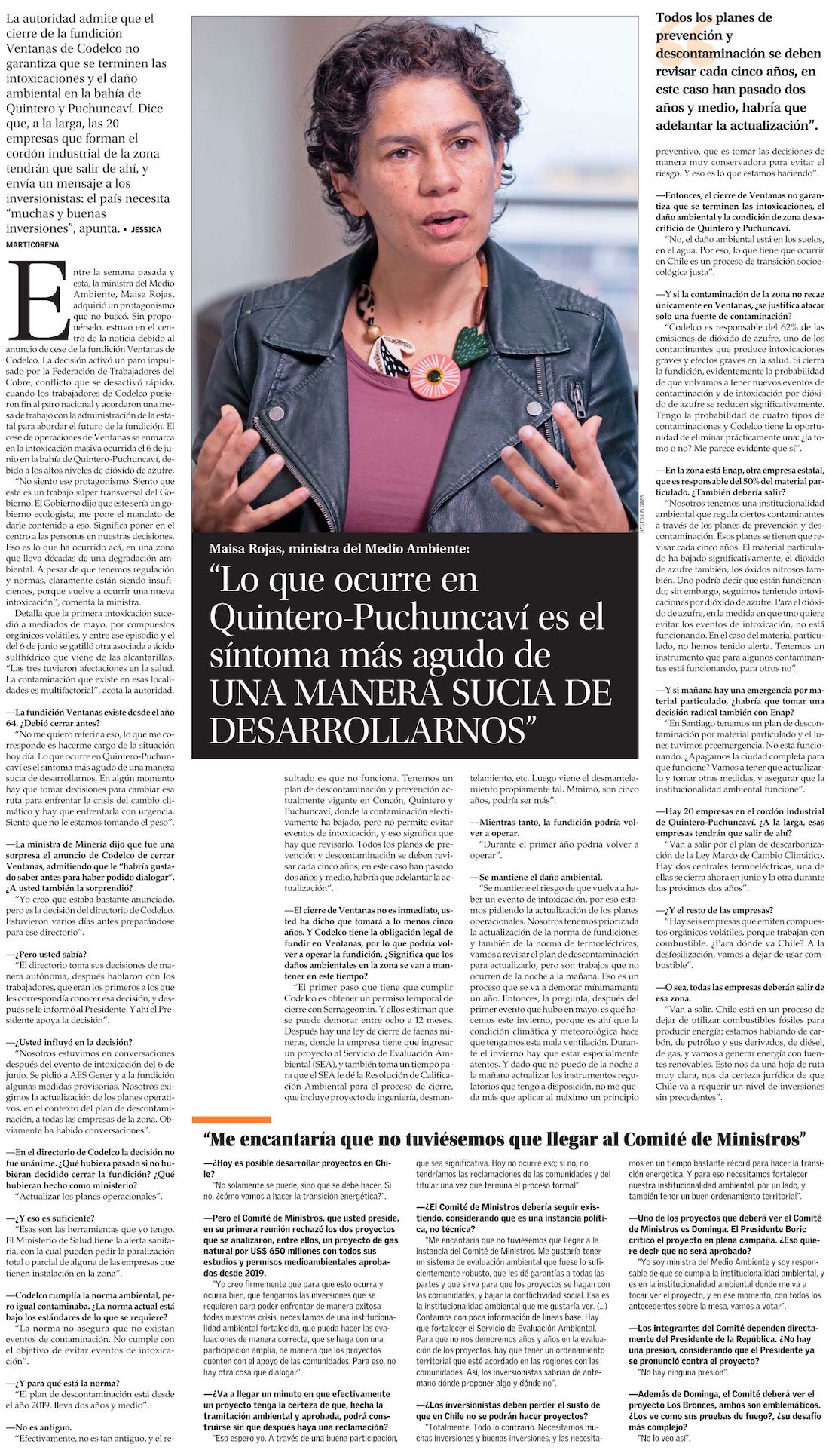 Ministra Maisa Rojas: "Van a salir" las empresas del cordón industrial - (El Mercurio de Valparaíso)