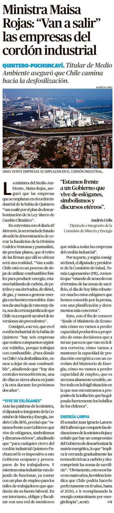 “Lo que ocurre en Quintero-Puchuncaví es el síntoma más agudo de una manera sucia de desarrollarnos” - (El Mercurio de Santiago)