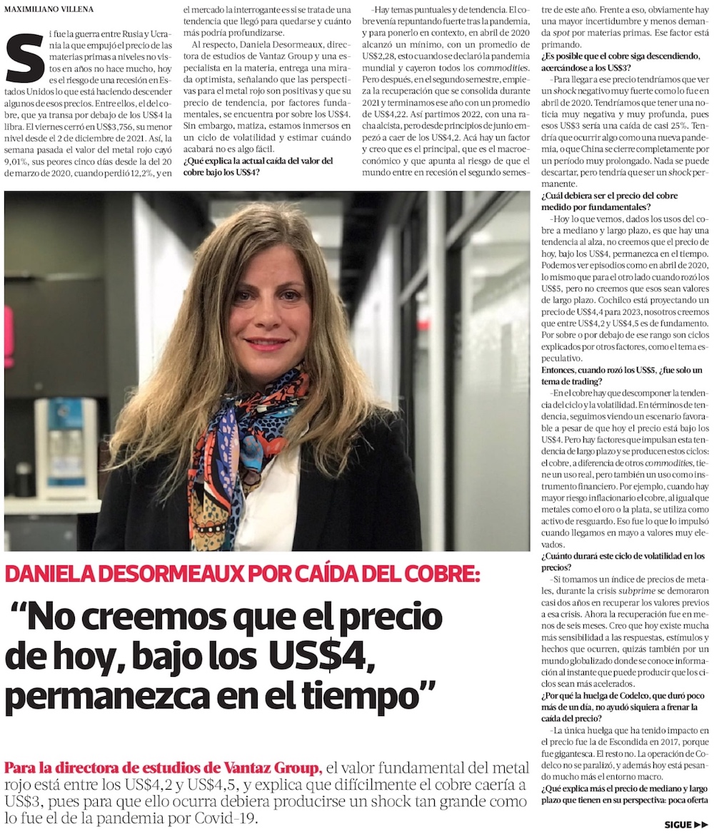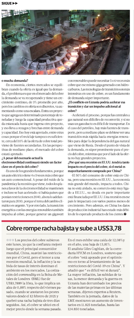 Riesgo de recesión global y desaceleración de principales economías aleja al cobre los US$4,0 - (El Mercurio de Antofagasta)