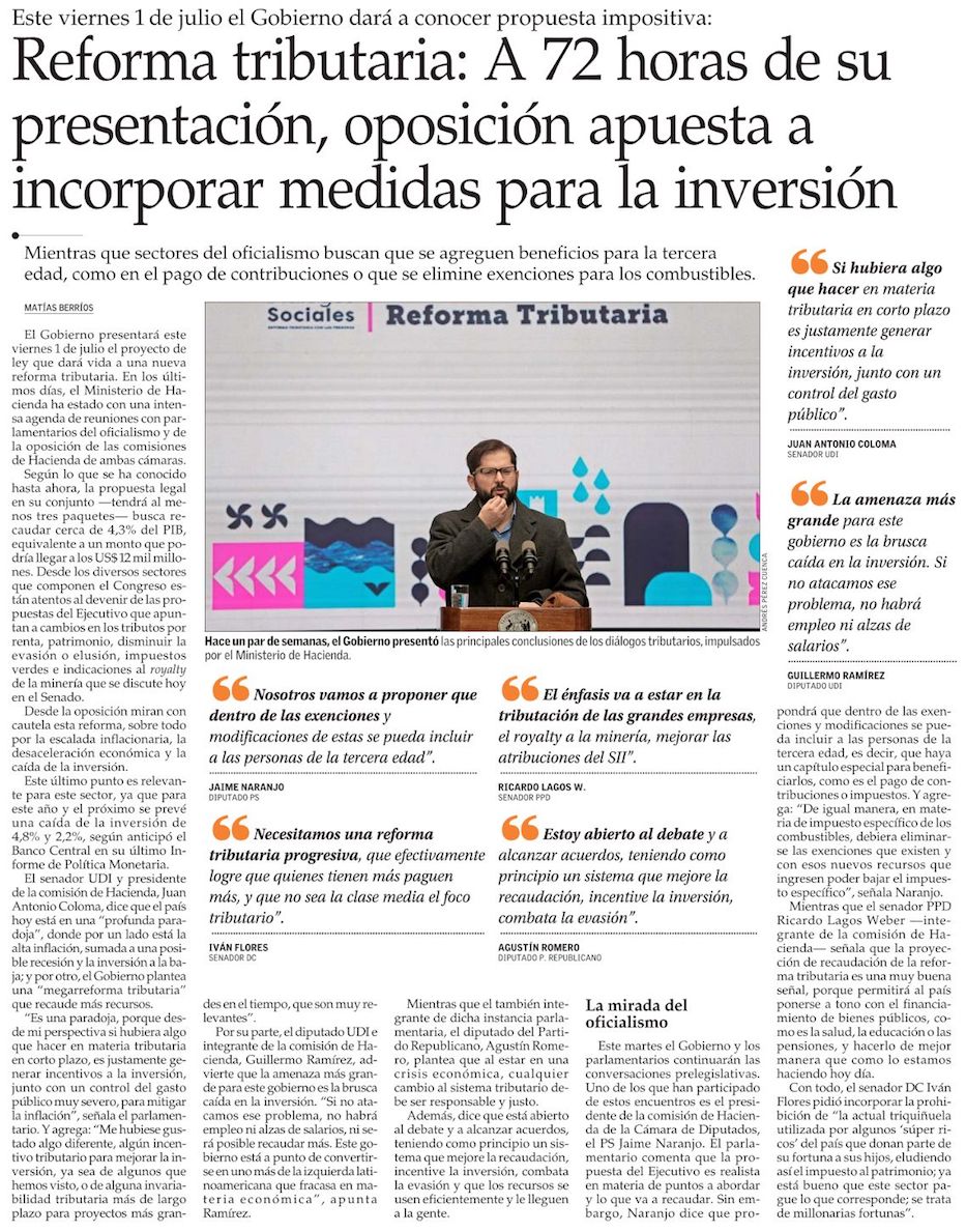 Marcel inicia acercamientos con la oposición y sector privado en trabajo prelegislativo para reforma tributaria - (El Mercurio de Santiago)