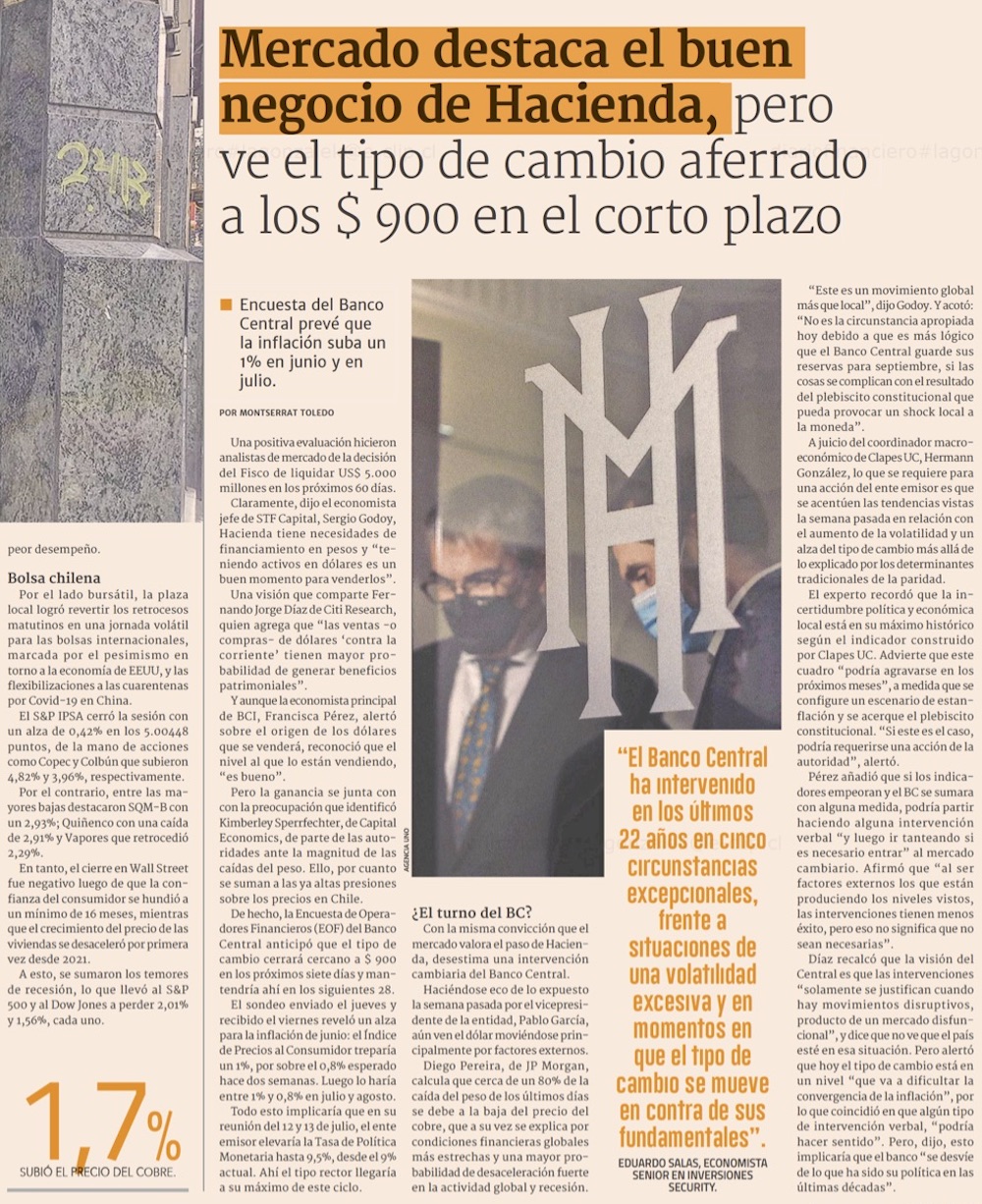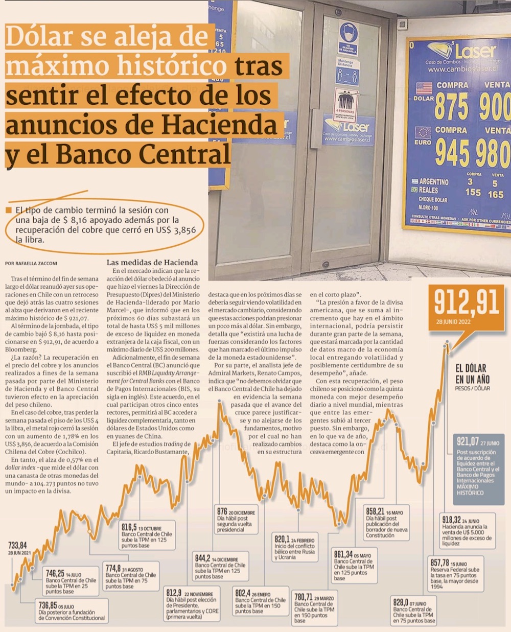 Efecto de subasta de Hacienda en mercado cambiario se diluye y dólar cierra en $911 - (El Mercurio de Santiago)