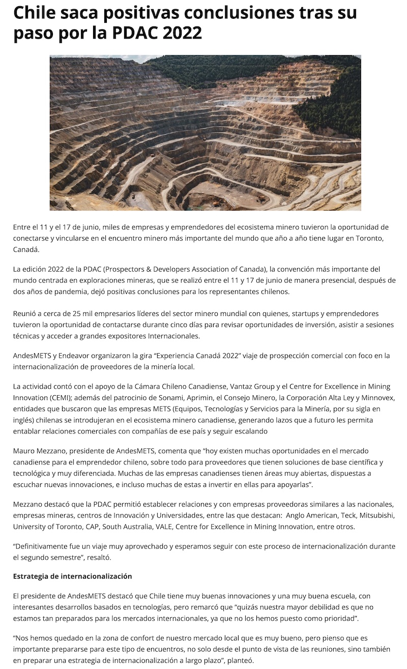 Chile saca positivas conclusiones tras su paso por la PDAC 2022 - (portalminero)