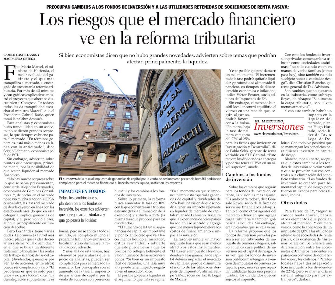 Gobierno presenta reforma tributaria y estima que 97% de las personas no se afectará con alzas - (El Mercurio de Santiago)