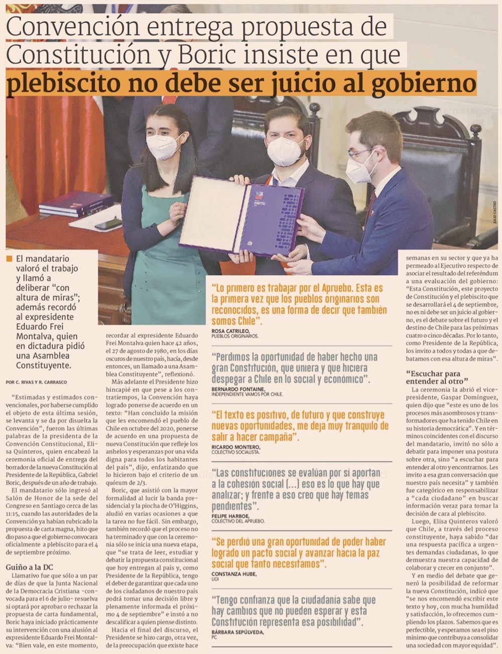 Convención Constitucional entrega propuesta de nueva Constitucional Presidente Boric - (La Tercera)