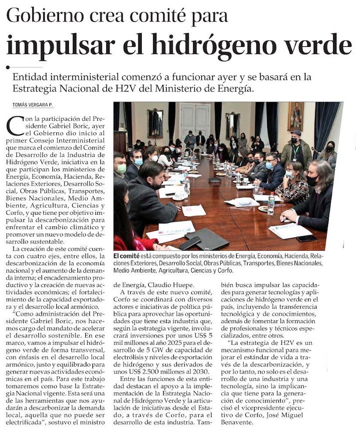 Chile cuenta con nueva institucionalidad para desarrollo de la industria de hidrógeno verde - (mch.cl)