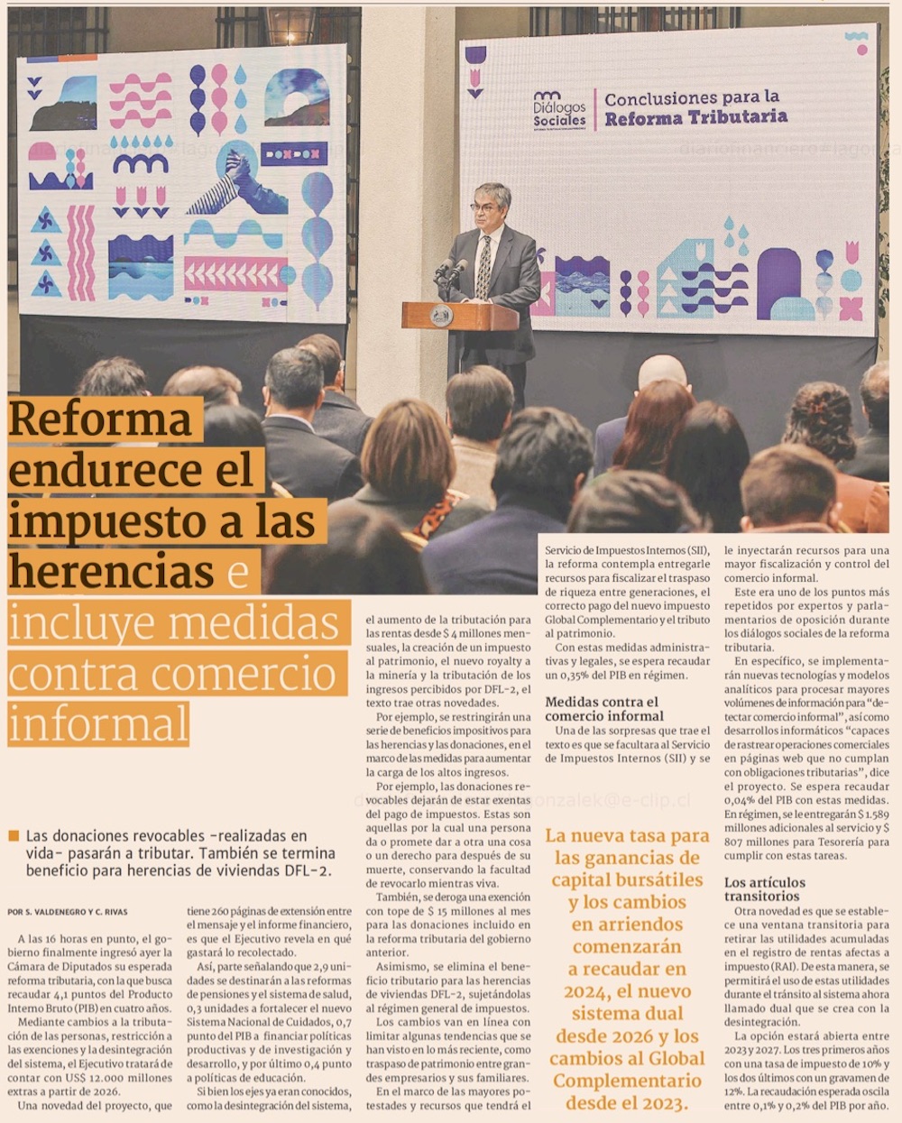 Impuesto a la riqueza: proyecto fija un "impuesto de salida" de 5% a quienes quieran fijar domicilio fuera de Chile - (Pulso)