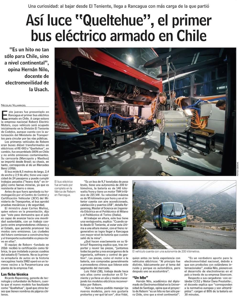 Primer bus eléctrico armado en Chile transporta a 24 personas y tiene autonomía de casi 200 km - (El Mercurio de Santiago)