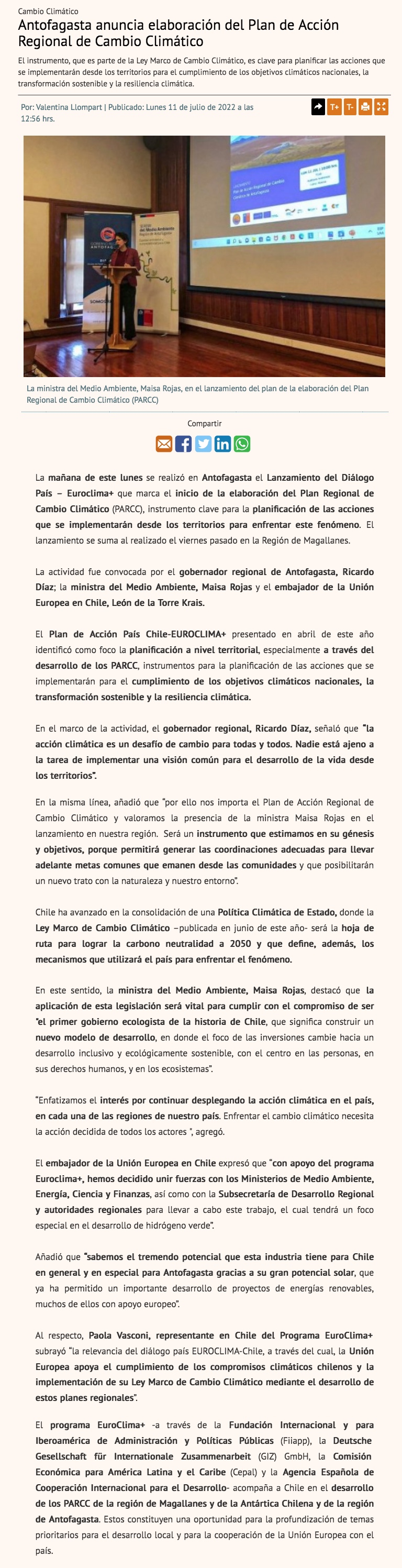 Lanzan convocatoria pública para elaborar Plan de Acción contra el Cambio Climático - (El Mercurio de Antofagasta)