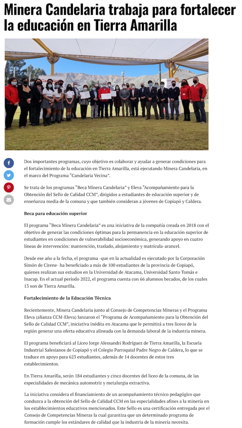 Minera Candelaria trabaja para fortalecer la educación en Tierra Amarilla - (Nostálgica Online)