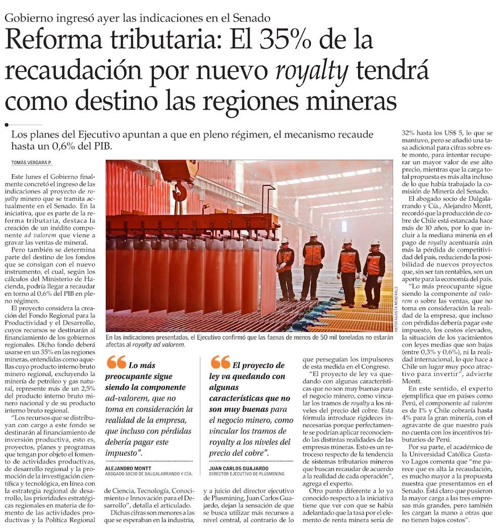 Hacienda endurece el royalty y expertos alertan que tasa sobre ventas es 4 veces más alta que en Perú - (Diario Financiero)