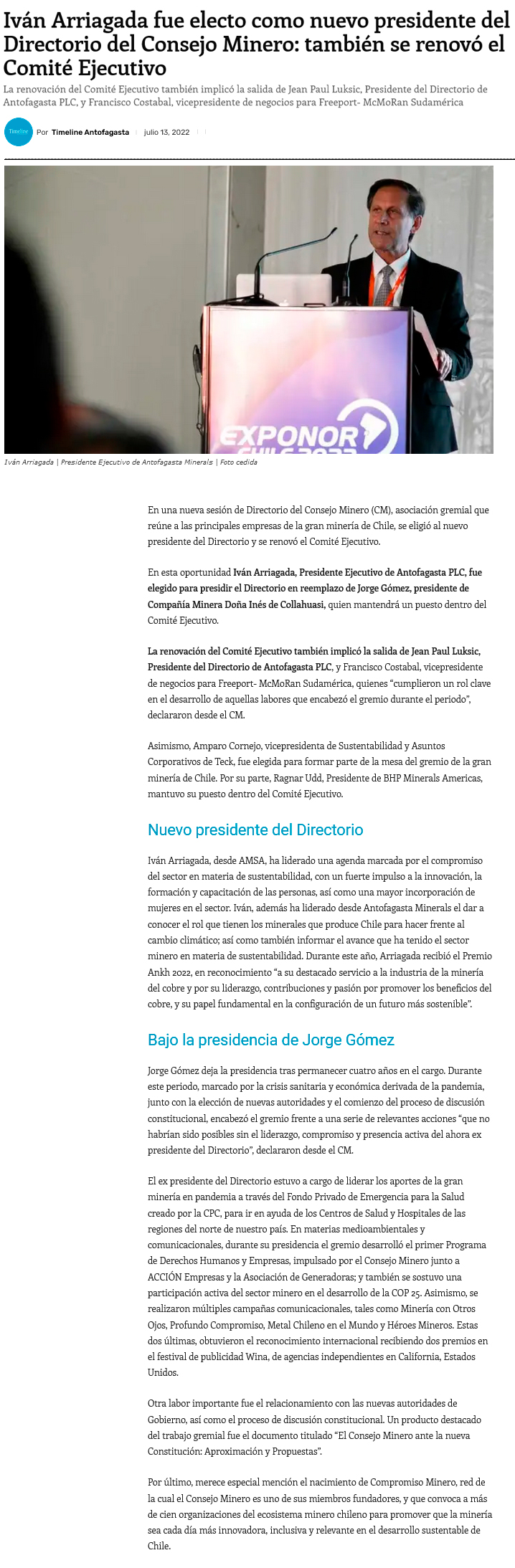 Iván Arriagada presidirá directorio del Consejo Minero, que agrupa a las 15 principales mineras del país - (norteminero online)