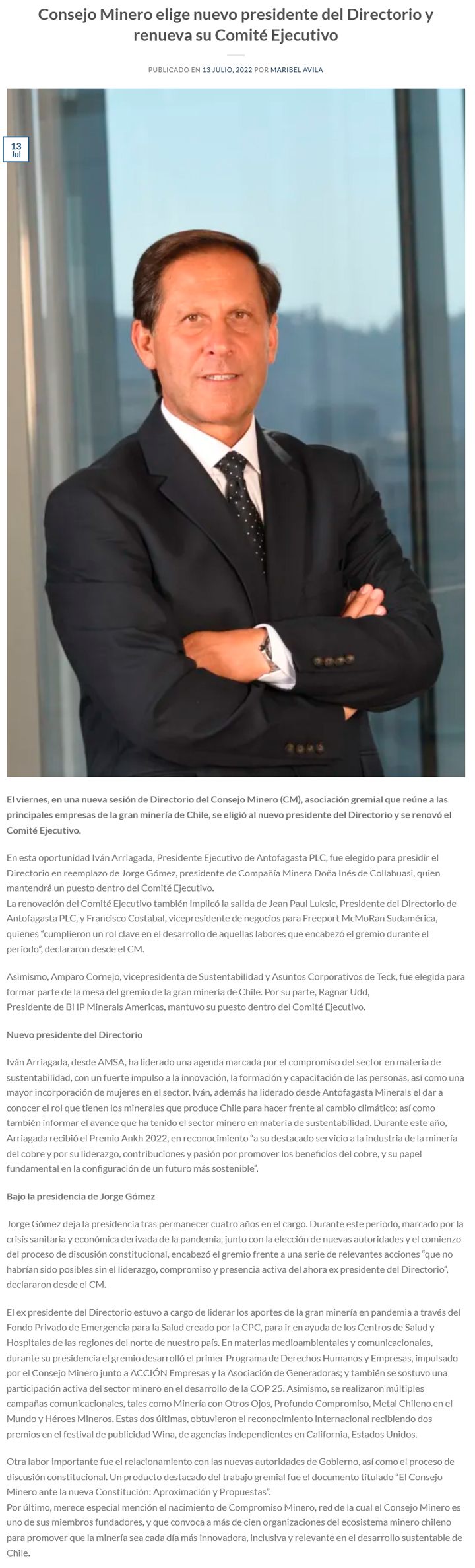 Iván Arriagada presidirá directorio del Consejo Minero, que agrupa a las 15 principales mineras del país - (norteminero online)