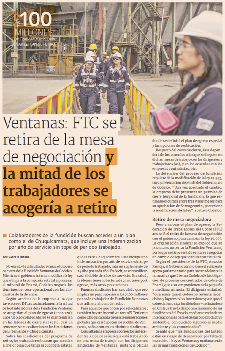 Sindicatos de Codelco congelan mesa de trabajo con el Gobierno - (El Mercurio de Santiago)