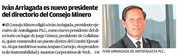 Iván Arriagada es nuevo presidente del directorio del Consejo Minero - (El Mercurio de Antofagasta)