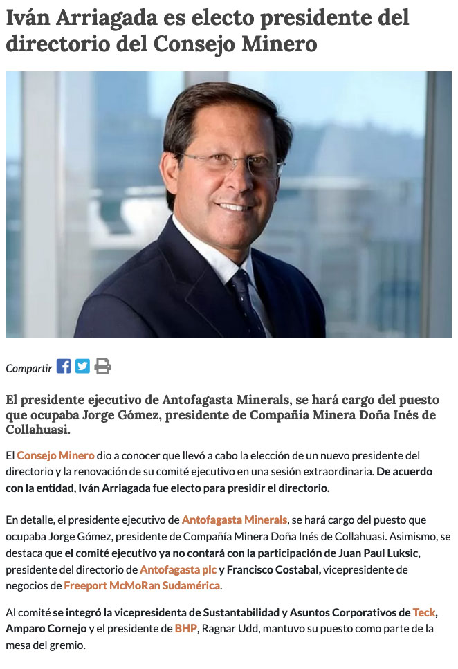 Iván Arriagada presidirá directorio del Consejo Minero, que agrupa a las 15 principales mineras del país - (norteminero online)