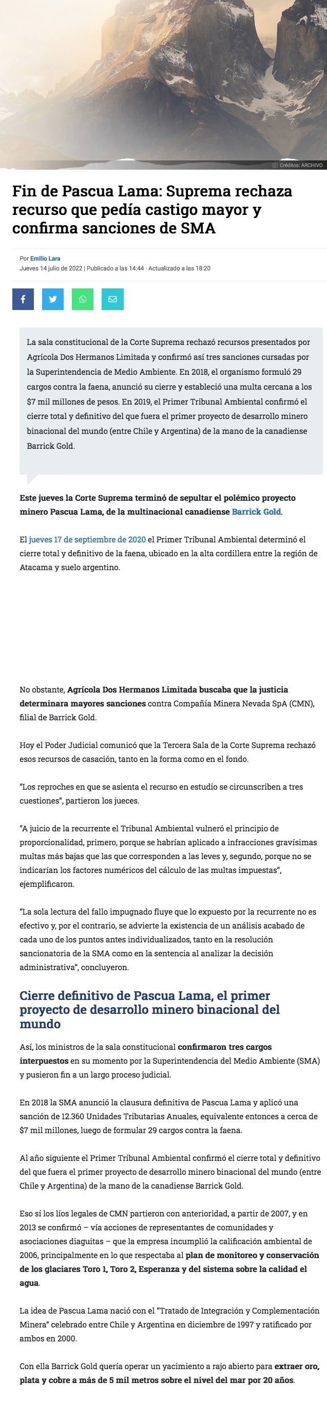 Corte Suprema confirmó el cierre definitivo de Pascua Lama - (El Diario de Atacama)