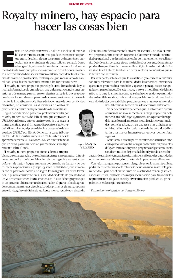 “Royalty Minero, hay espacio para hacer las cosas bien” - (Pulso Online)