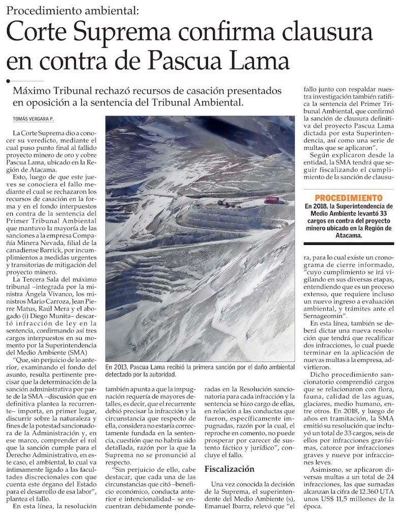 Suprema confirma sanciones de la SMA contra proyecto minero Pascua Lama - (Pulso)