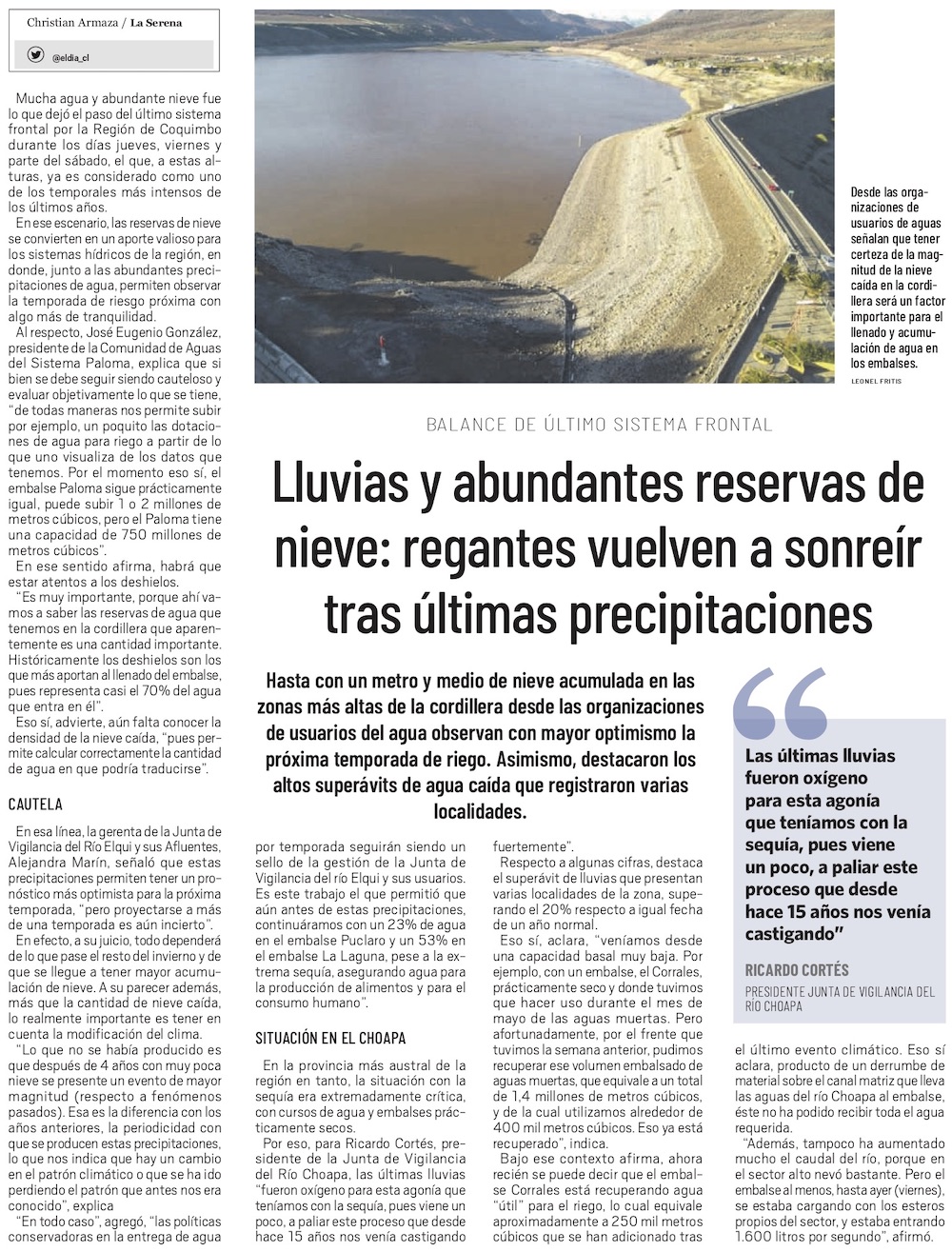 Sistema frontal deja a la región con 131% de superávit de agua caída - (La Región)