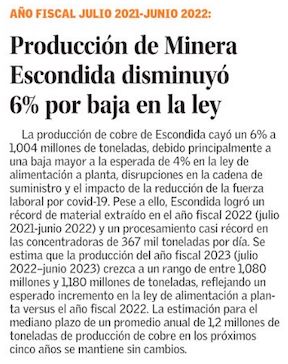 Caída de producción de Escondida lastra resultados de BHP en Chile - (DF Online)