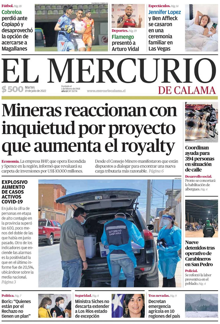 BHP revaluará inversiones por 10 mil millones de dólares si el royalty a la minería se concreta - (El Mercurio de Antofagasta)