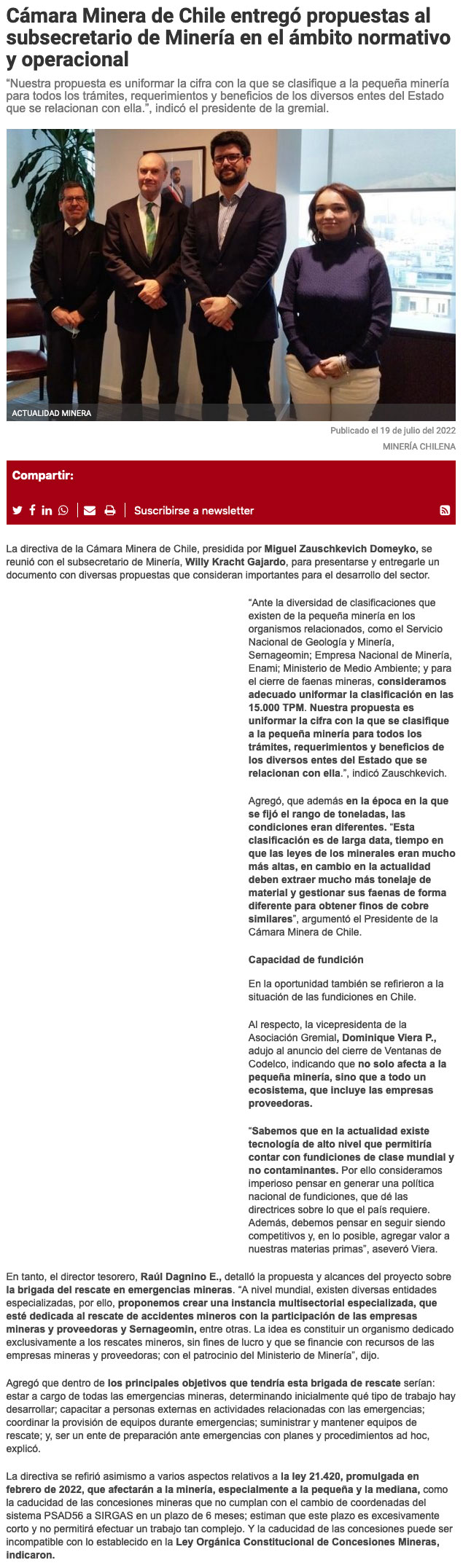 Cámara Minera de Chile entregó diversas propuestas al Subsecretario de Minería - (timeline)