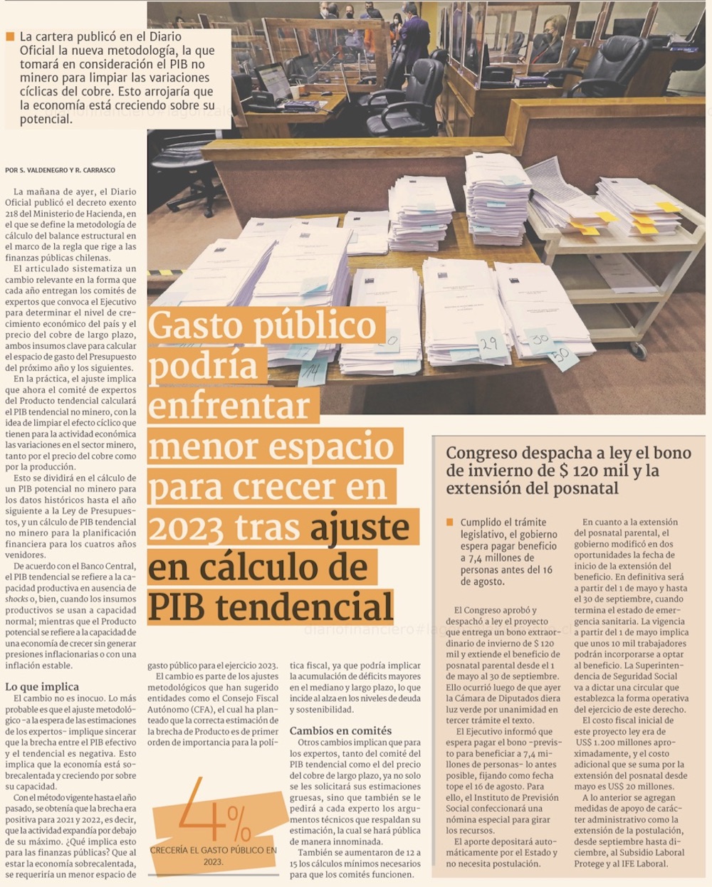 Cambio en cálculo de PIB Tendencial daría menos espacio a gasto en 2023 - (El Mercurio de Santiago)