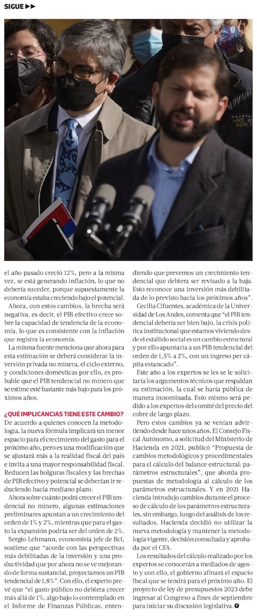 Cambio en cálculo de PIB Tendencial daría menos espacio a gasto en 2023 - (El Mercurio de Santiago)