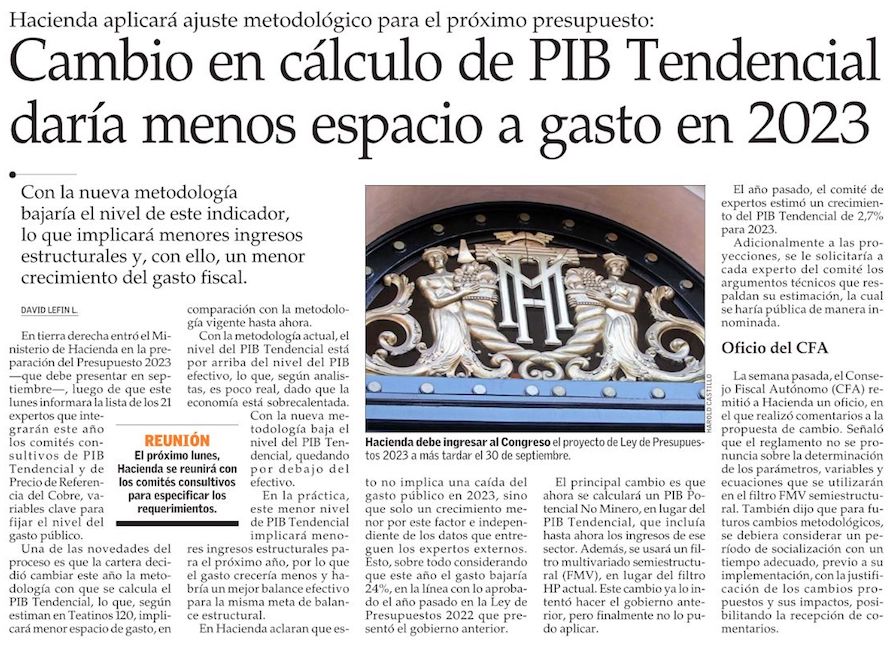 Gasto público podría enfrentar menor espacio para crecer en 2023 tras ajuste en cálculo de PIB tendencial - (Diario Financiero)