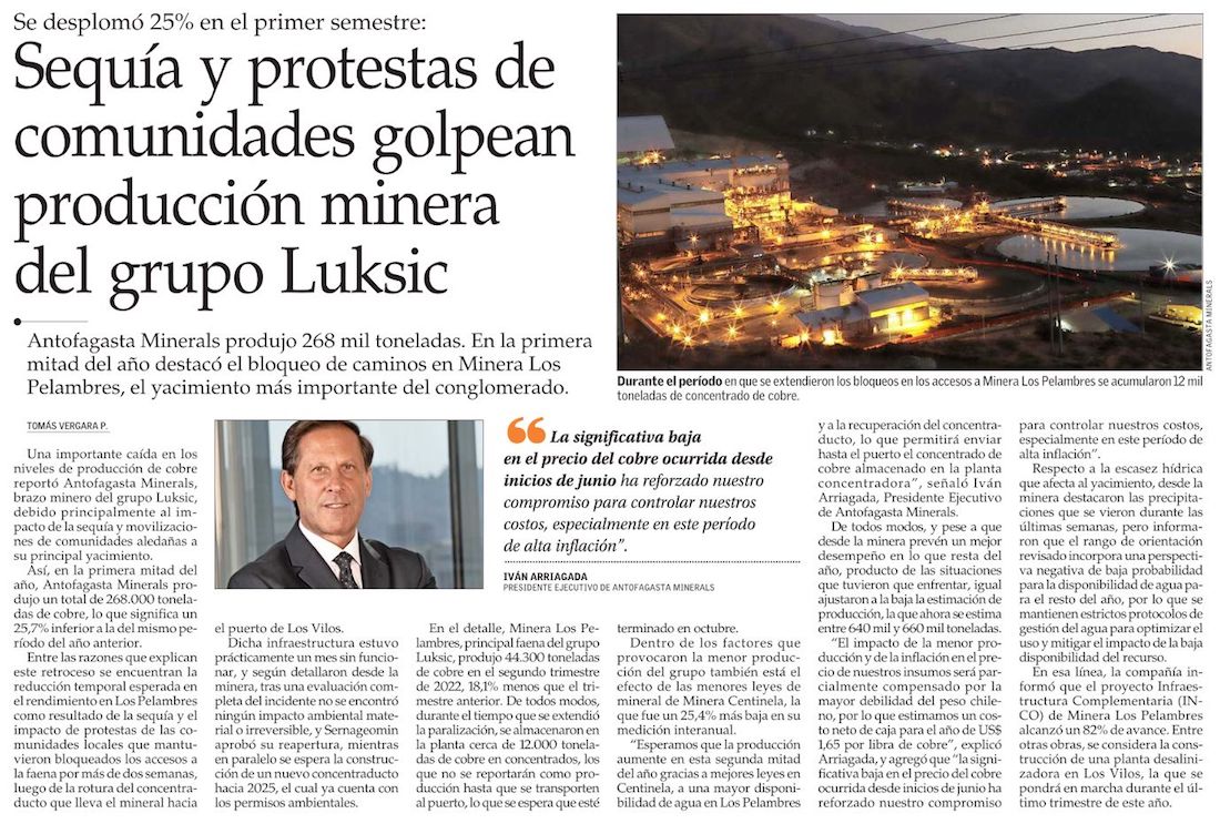 Sequía sigue impactando la producción de cobre de minera del grupo Luksic, y la compañía reduce sus proyecciones para este año - (Pulso)