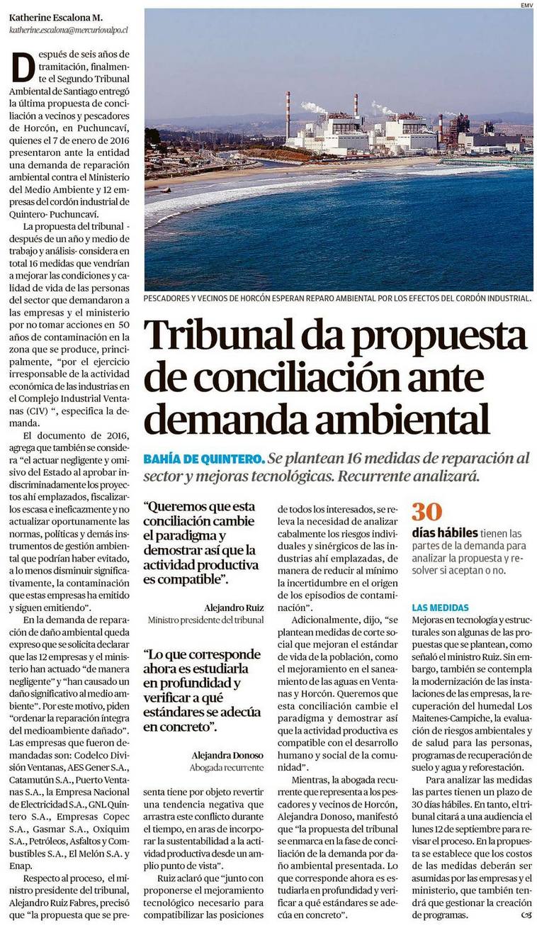 A conciliación demanda por daño ambiental en Ventanas - (La Segunda)